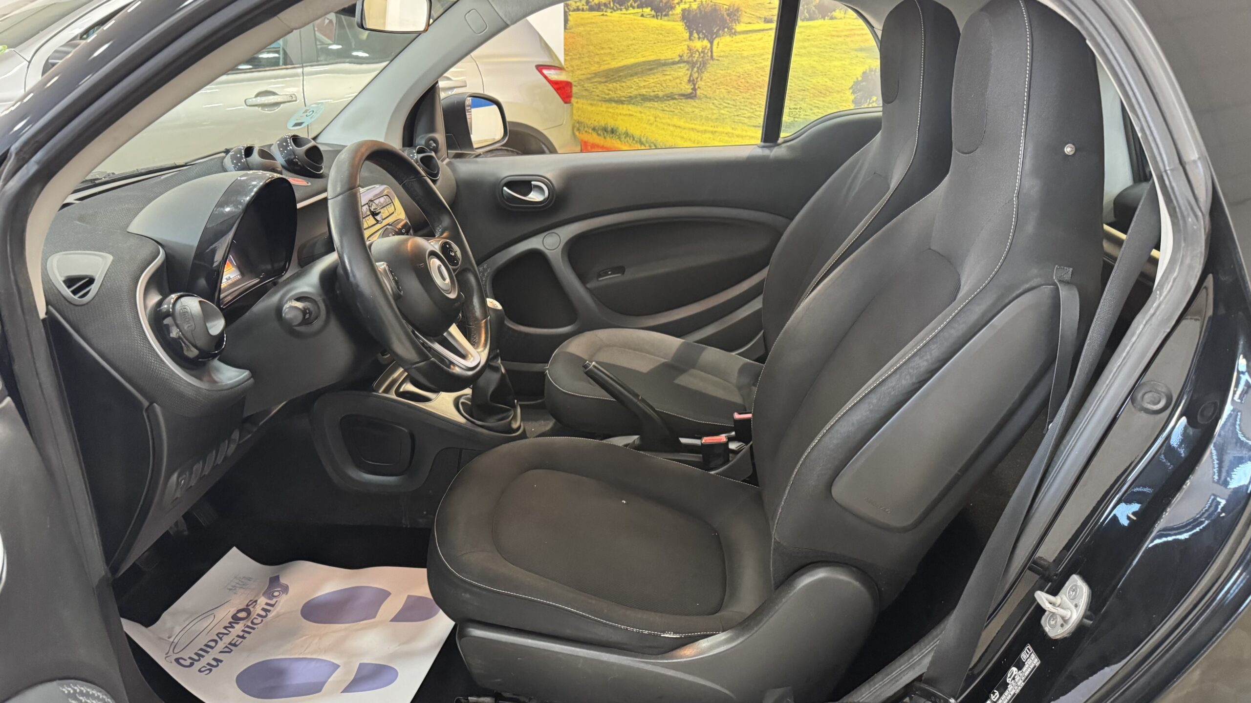 Tablero de instrumentos y sección central de puertas en negro estructurado y apliques en blanco De serie